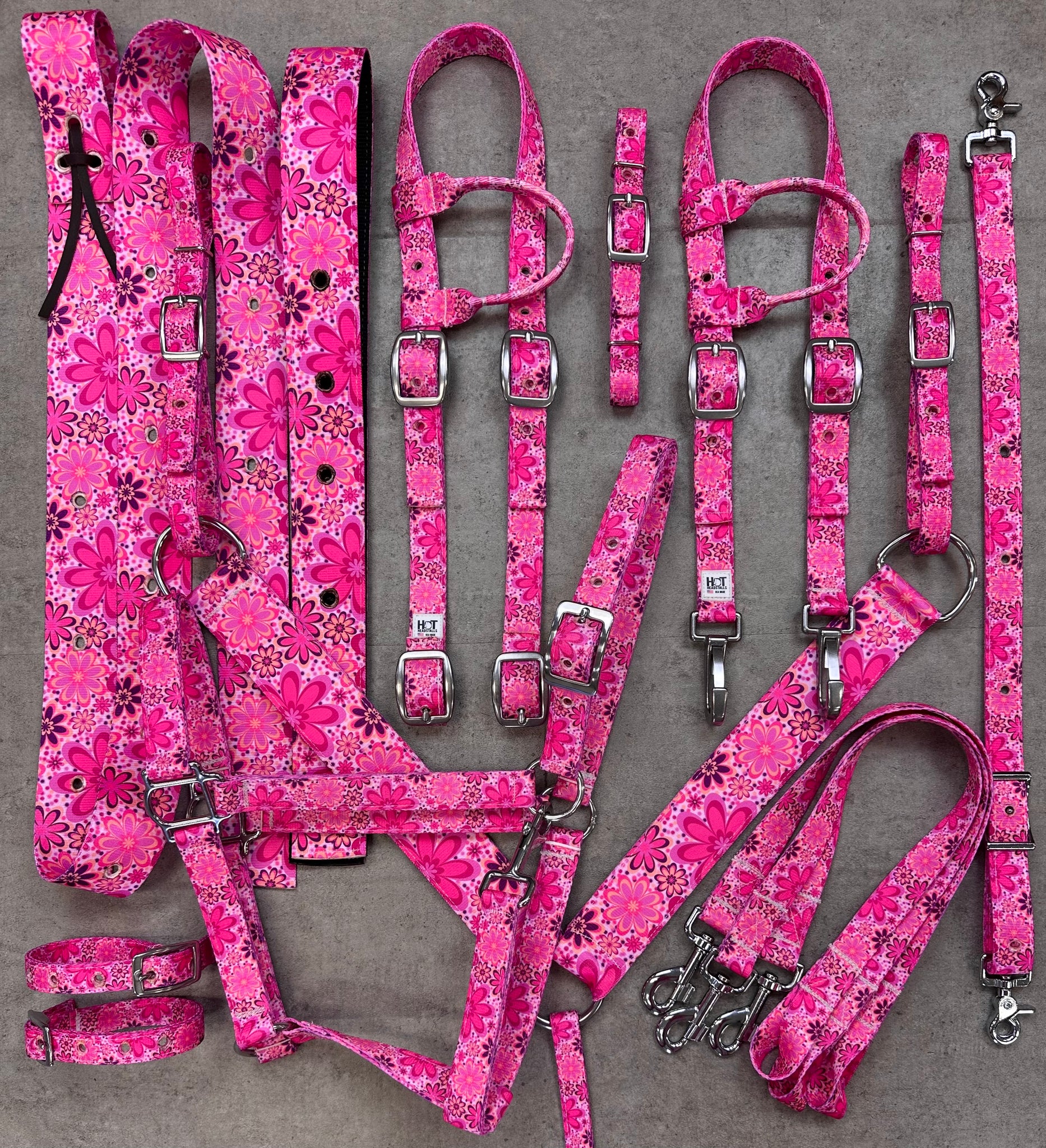 Horse Size Nylon Tack handmade in the USA with high quality materials and stainless steel hardware. We have saddle pads, saddle pouches, tailbags, and more available to match!