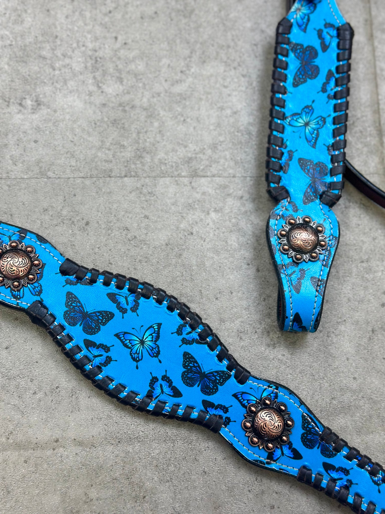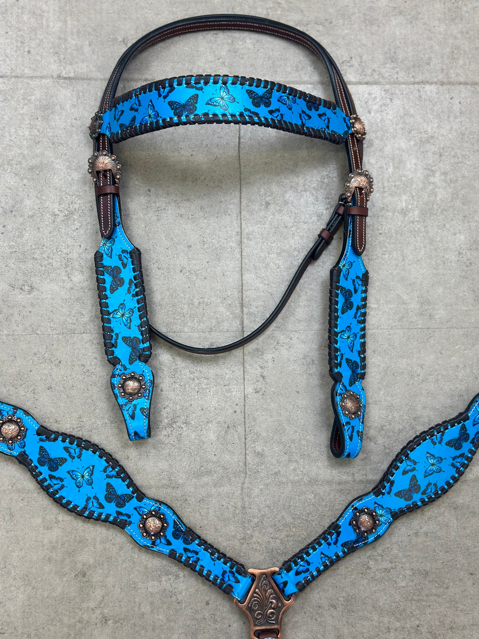 These are high quality printed leather tack sets. Only one batch in this pattern will be made. This set comes with a headstall and breastcollar. Horse size and very adjustable with room to poke more holes. Model in photos is my 14.2 hand cowhorse.
