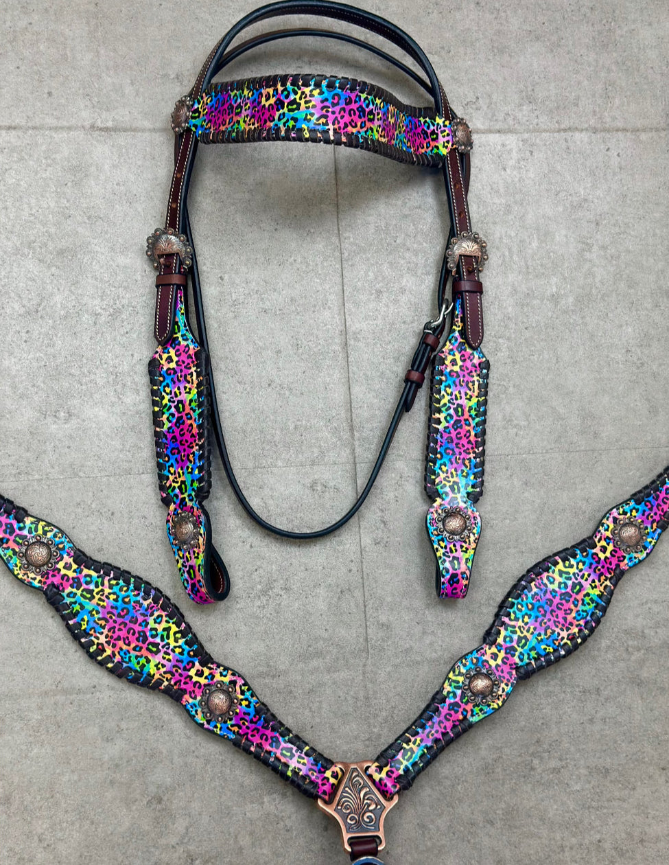 Hot Headstalls Leather Headstall and Breastcollar Set. These are high quality printed leather tack sets. Horse size and very adjustable with room to poke more holes. Model in photos is my 14.2 hand cowhorse. Other items to match sold separately.