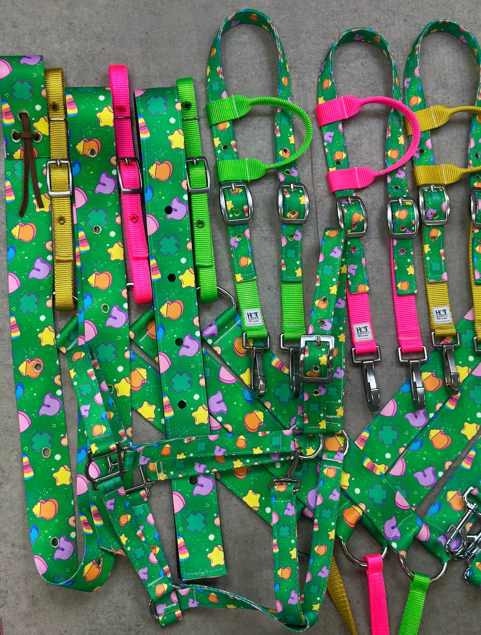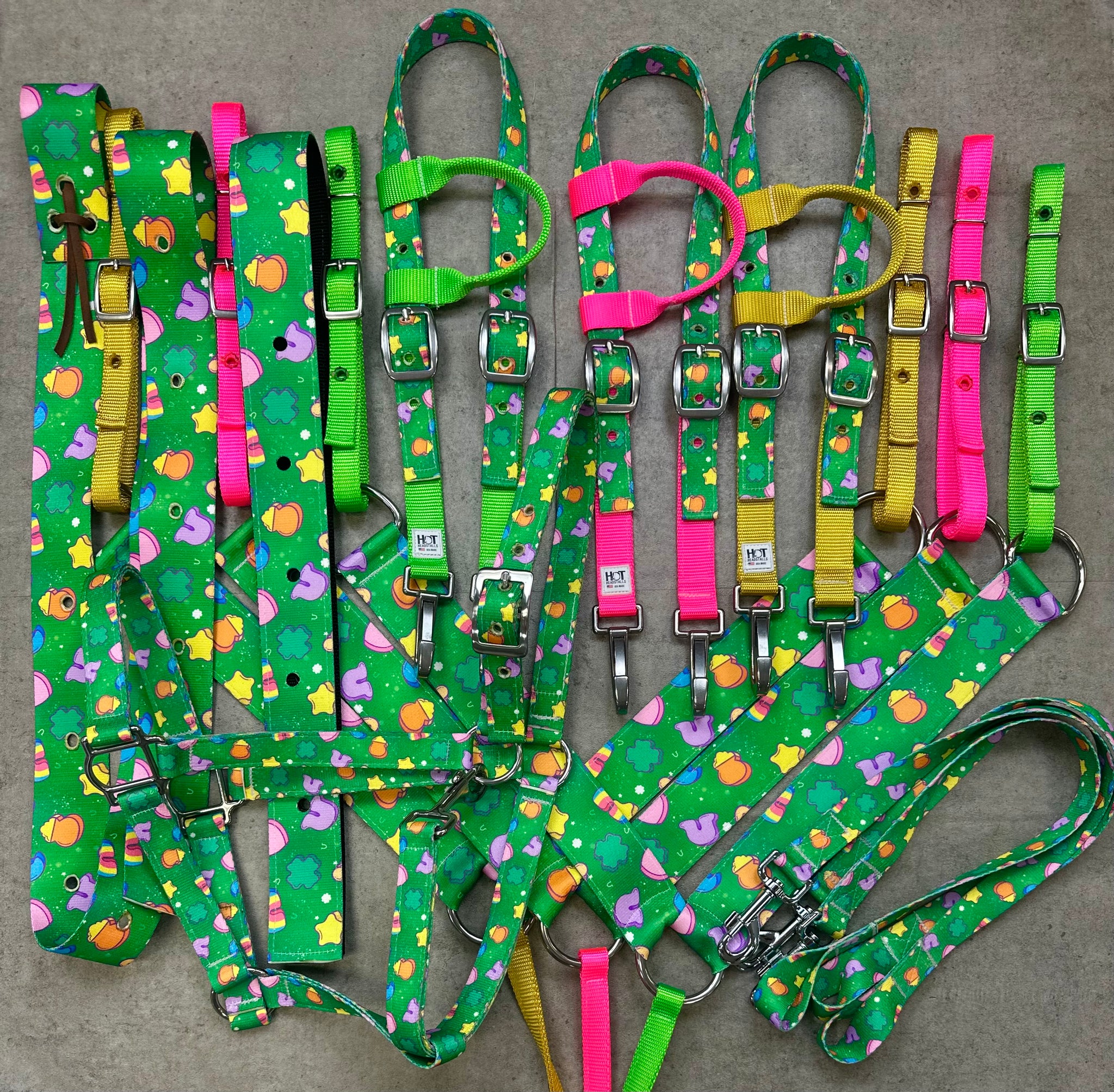 Limited Edition Horse Size Lucky Charms Nylon Tack! Select the items you want in the drop down menu. USA made with high quality materials and stainless steel hardware. Matching tailbags are on another listing!