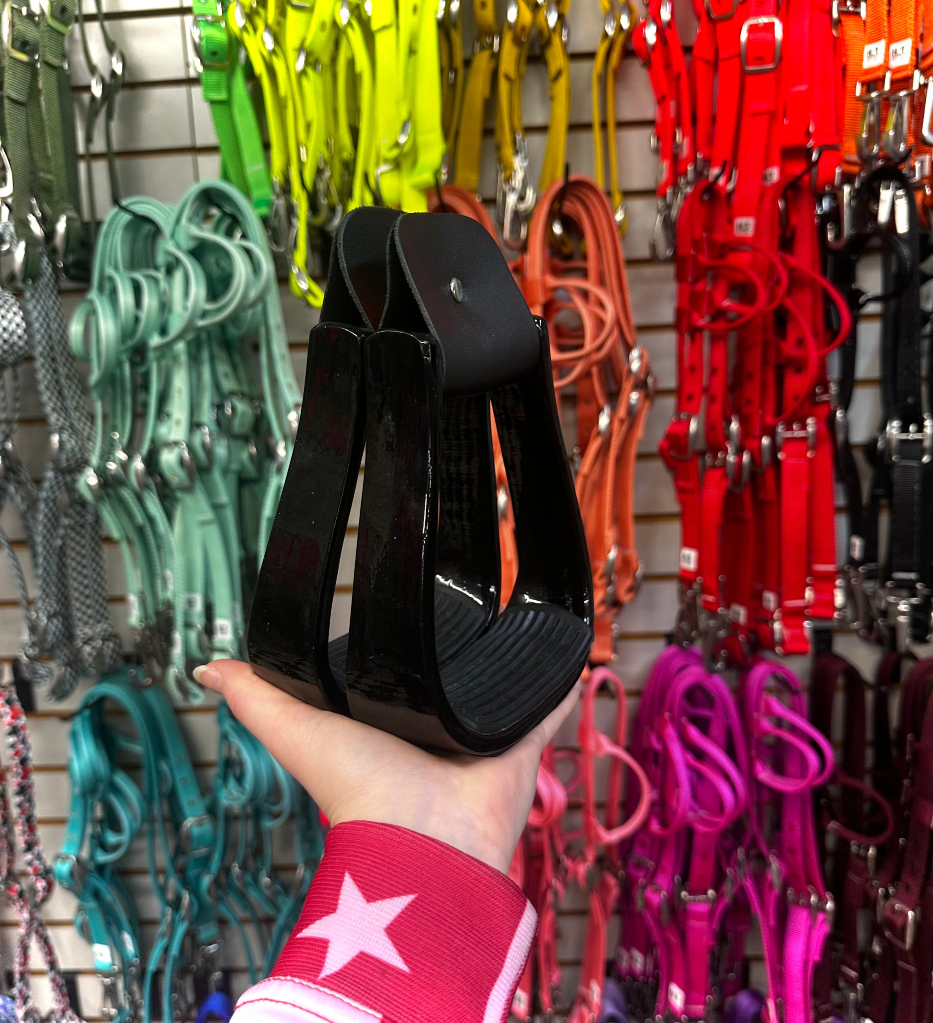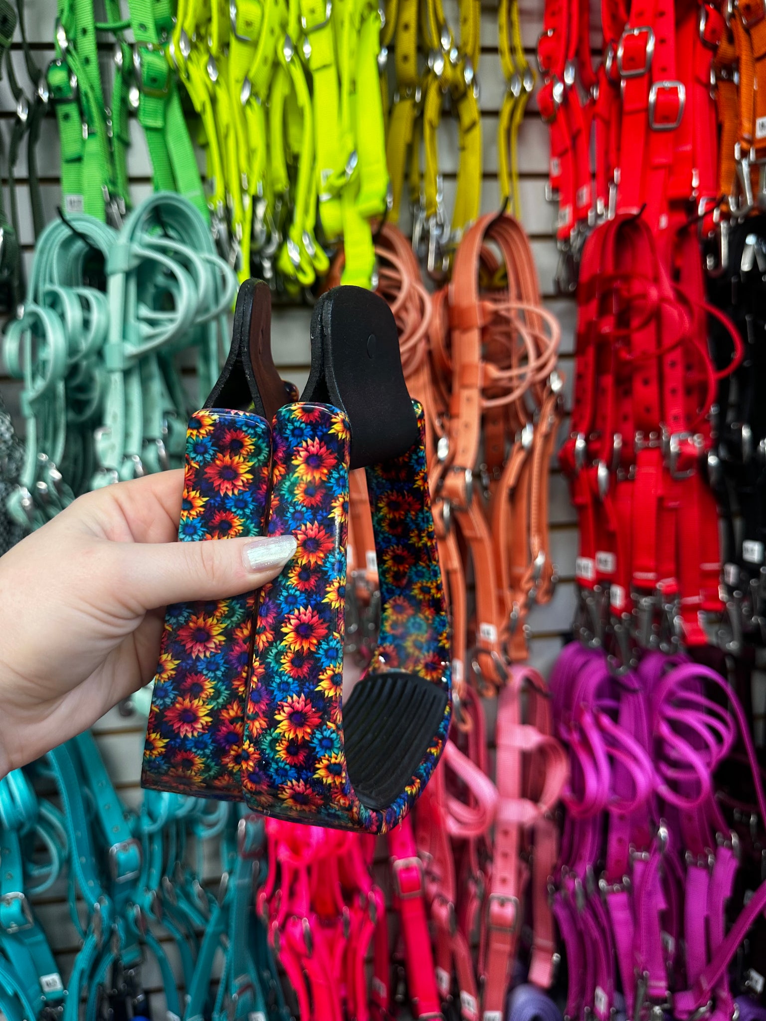 Hot Headstalls brings to you unique high quality patterned stirrups in our most popular fun patterns. We currently have limited quantities, so act fast! They are 2 inches deep and 5 inches wide. We are not taking custom orders . They match our other fun patterned tack sets, halters, bell boots, and sport boots.