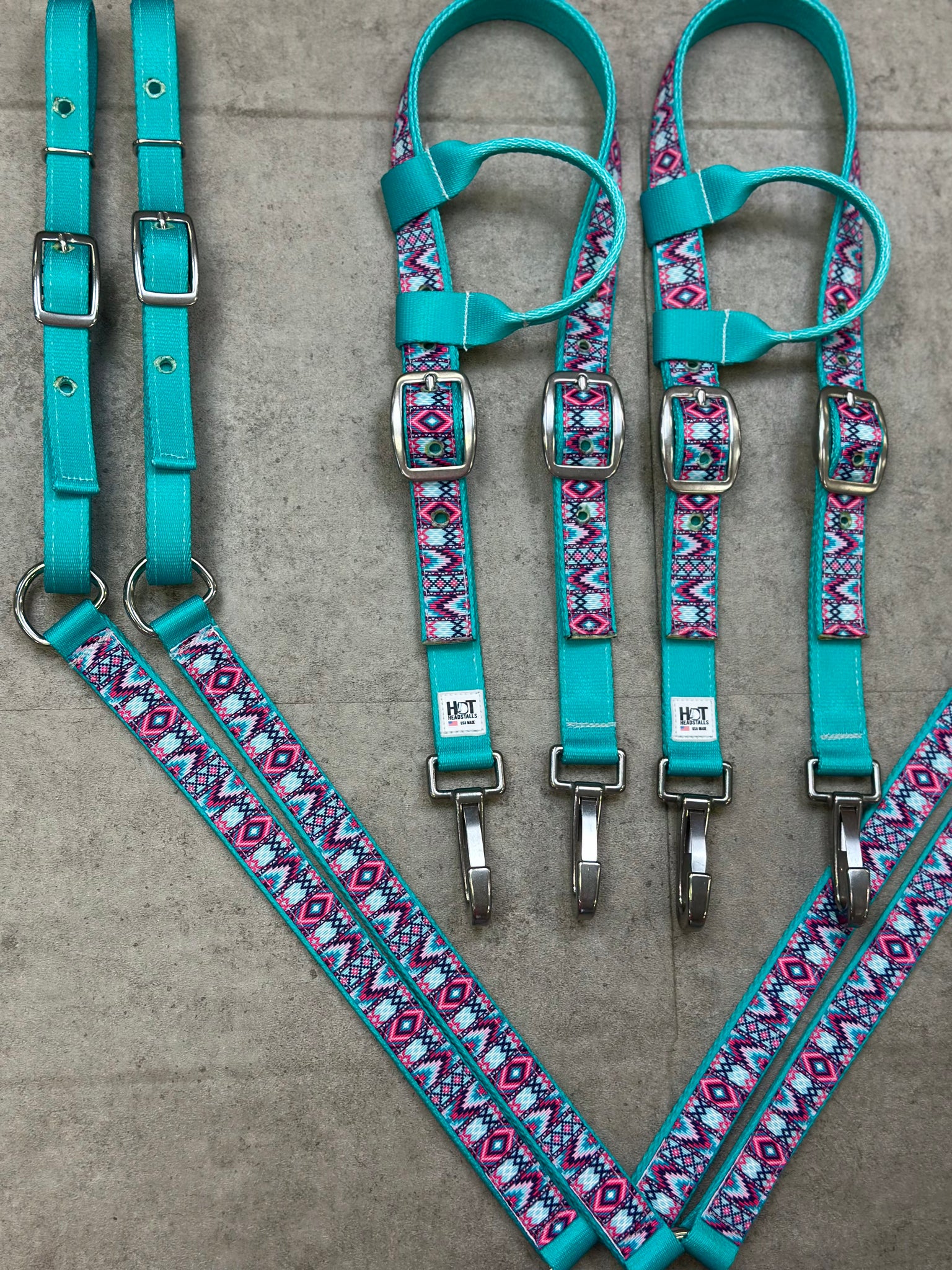 Pink and Teal Aztec Tack Set