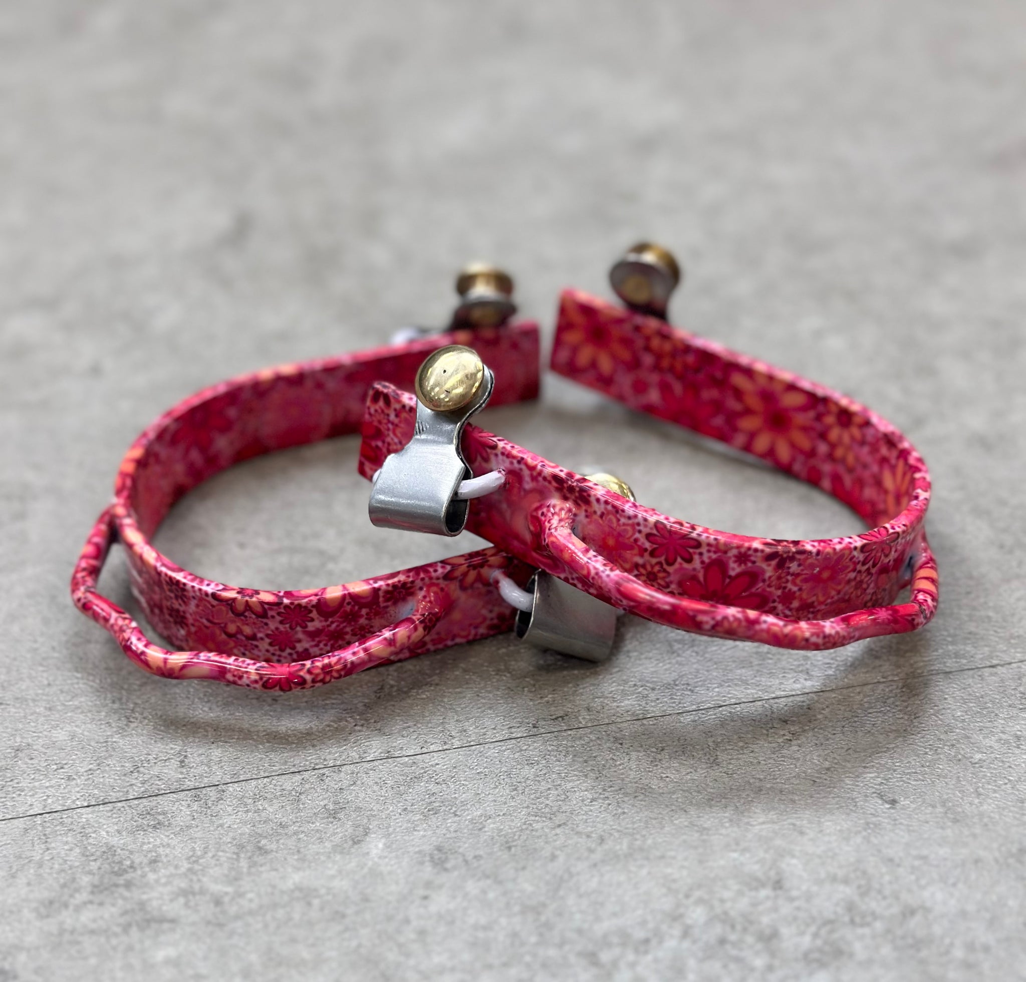 Womens size patterned bumper spurs! These are instock and ready to ship in some of our most popular patterns! Model in photos is wearing a size 8.5 boot