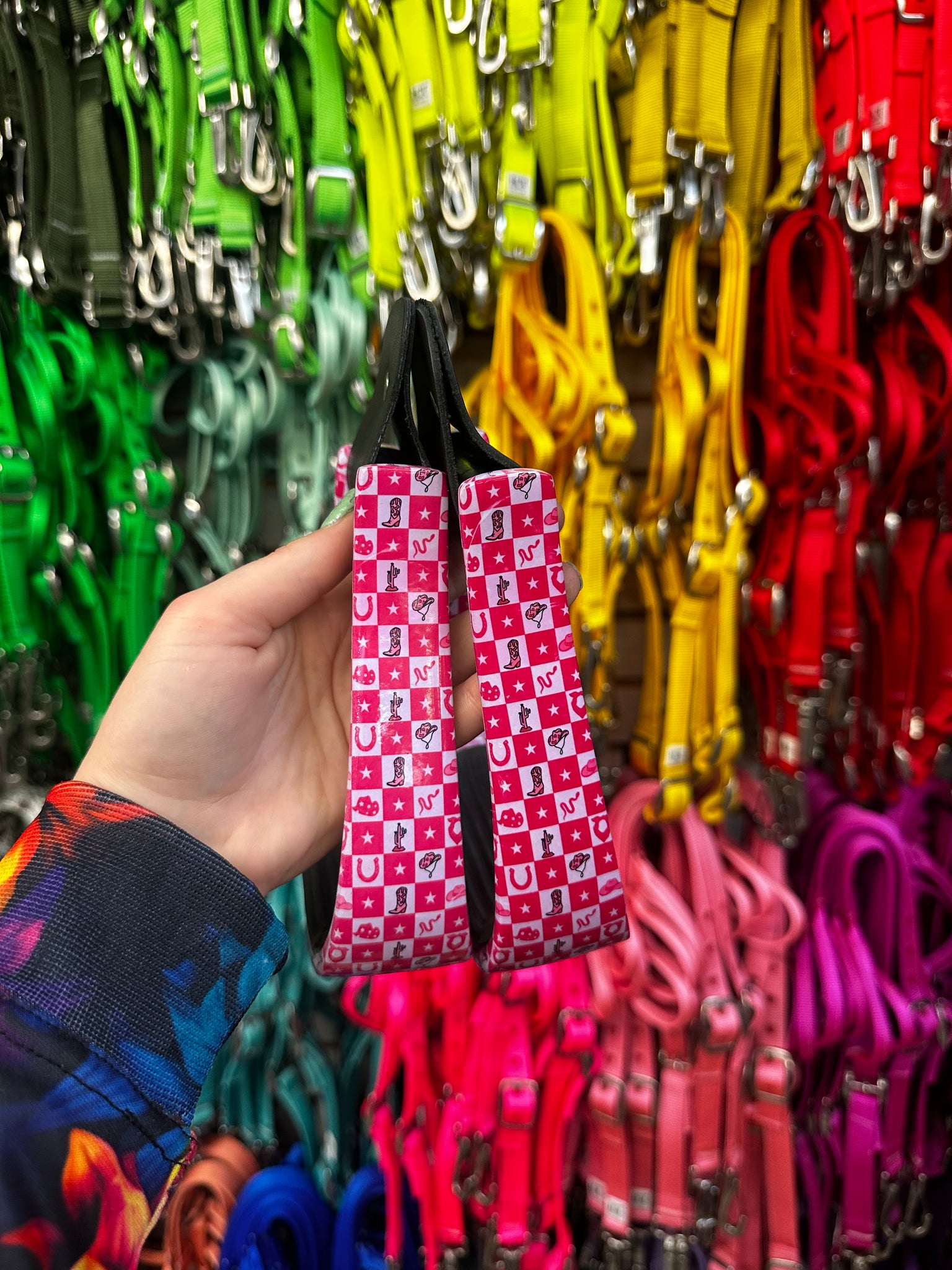 Hot Headstalls brings to you unique high quality patterned stirrups in our most popular fun patterns. We currently have limited quantities, so act fast! They are 2 inches deep and 5 inches wide. We are not taking custom orders . They match our other fun patterned tack sets, halters, bell boots, and sport boots.